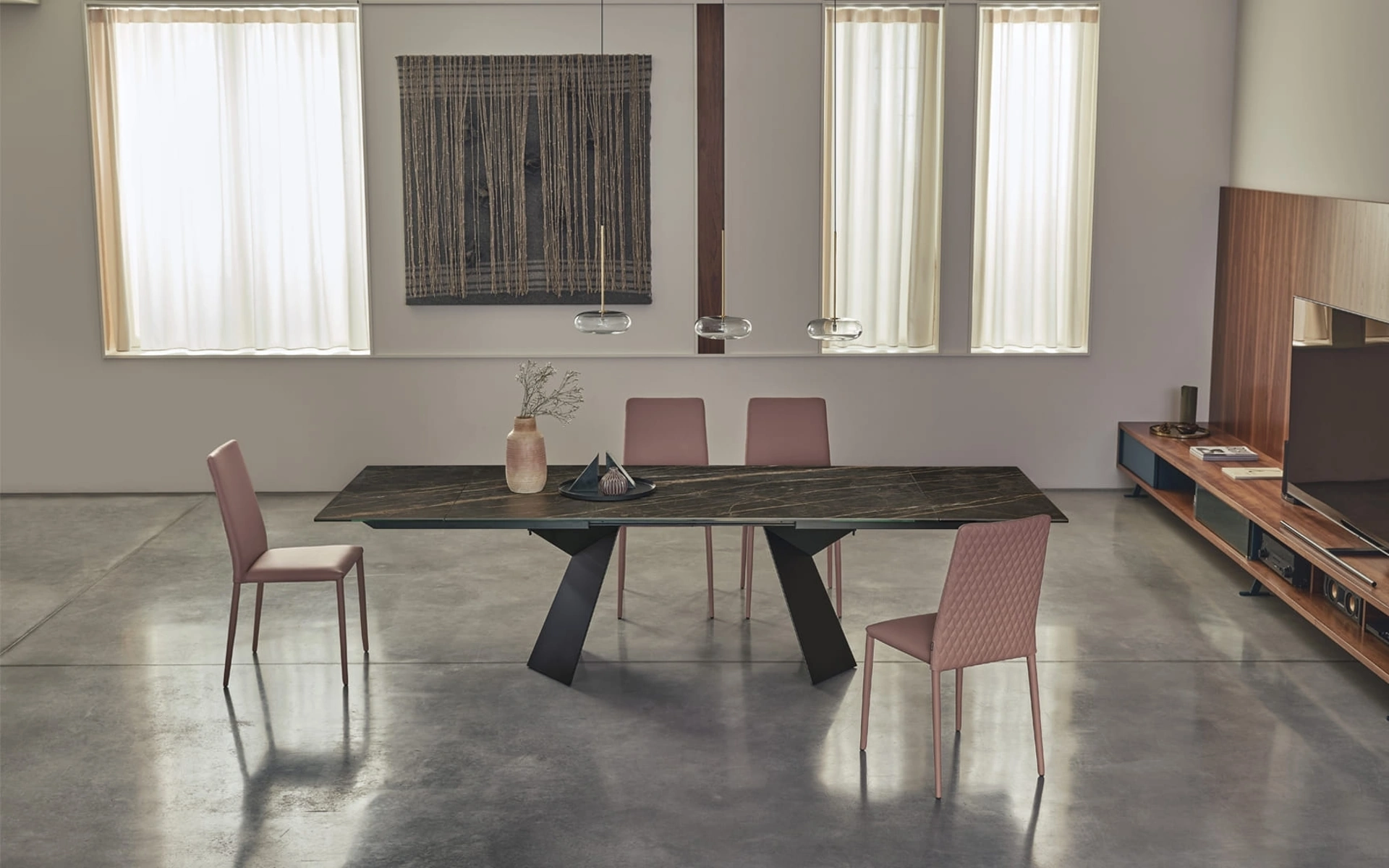 I Tavoli sono componenti d'arredo grazie ai quali è possibile completare il living, la zona cucina o anche altri ambienti domestici, grazie a materiali pregiati e fantasiosi accostamenti di colore. Compila il form e contattaci per scoprire l'Arredamento Casa delle migliori marche, tavolini e sedie a marchio Bontempi. Tavolo allungabile Fiandre di Bontempi: scopri un ricco catalogo di mobili ed elementi accessori da pranzo per ultimare i tuoi spazi contando su diverse possibilità di progettualità. I modelli allungabili in gres come quello visibile in foto si adattano ai più diversi contesti abitativi, essendo davvero poliedrici e robusti.