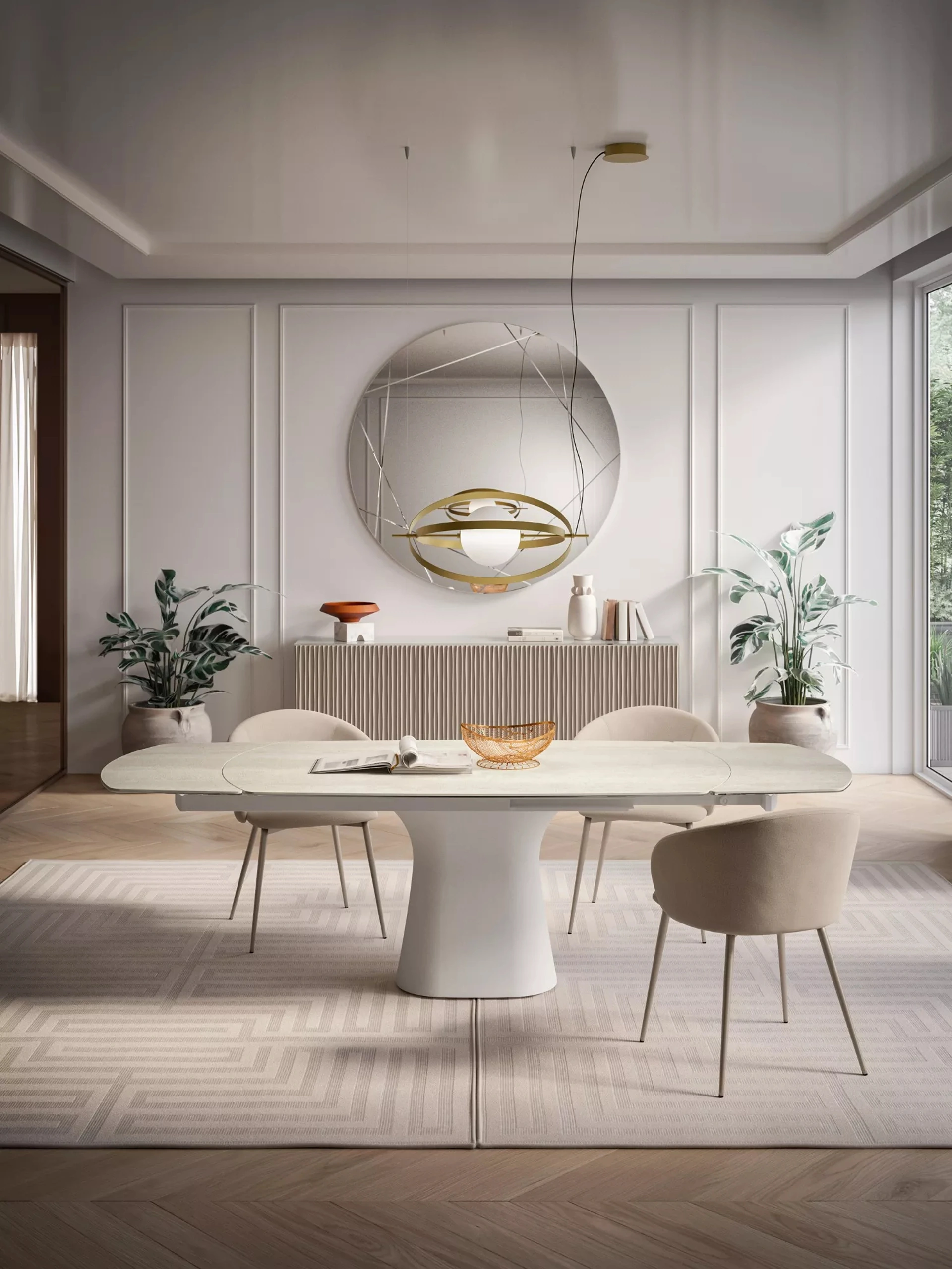 Il noto e rinomato brand Bontempi, leader nella produzione di arredi in gres, ha scelto per la sua linea una vasta scelta di finiture, forme e tonalità. Tavolo allungabile Podium di Bontempi: realizzato in materiali durevoli è caratterizzato dalle linee decise del top e da un basamento elegante e sofisticato. Un modello come quello nella fotografia, in abbinamento alle giuste sedie, saprà completare lo stile delle stanze di casa dedicate in assoluto alla convivialità. Ideali per dare vita a degli accostamenti unici con sedie e complementi design, i Tavoli allungabili dell'azienda sono soluzioni tra le più originali in commercio, ideali per il living e la zona cucina.