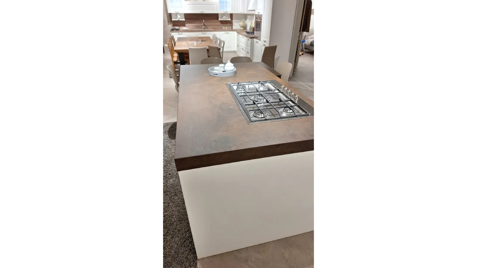 La cucina Adria è un vero e proprio gioiello di design ed efficienza, che trova il suo abbinamento perfetto nel gres effetto corten. Questo materiale, caratterizzato da un affascinante look industriale, contribuisce a creare un'atmosfera calda e accogliente, ma al tempo stesso moderna e minimalista.