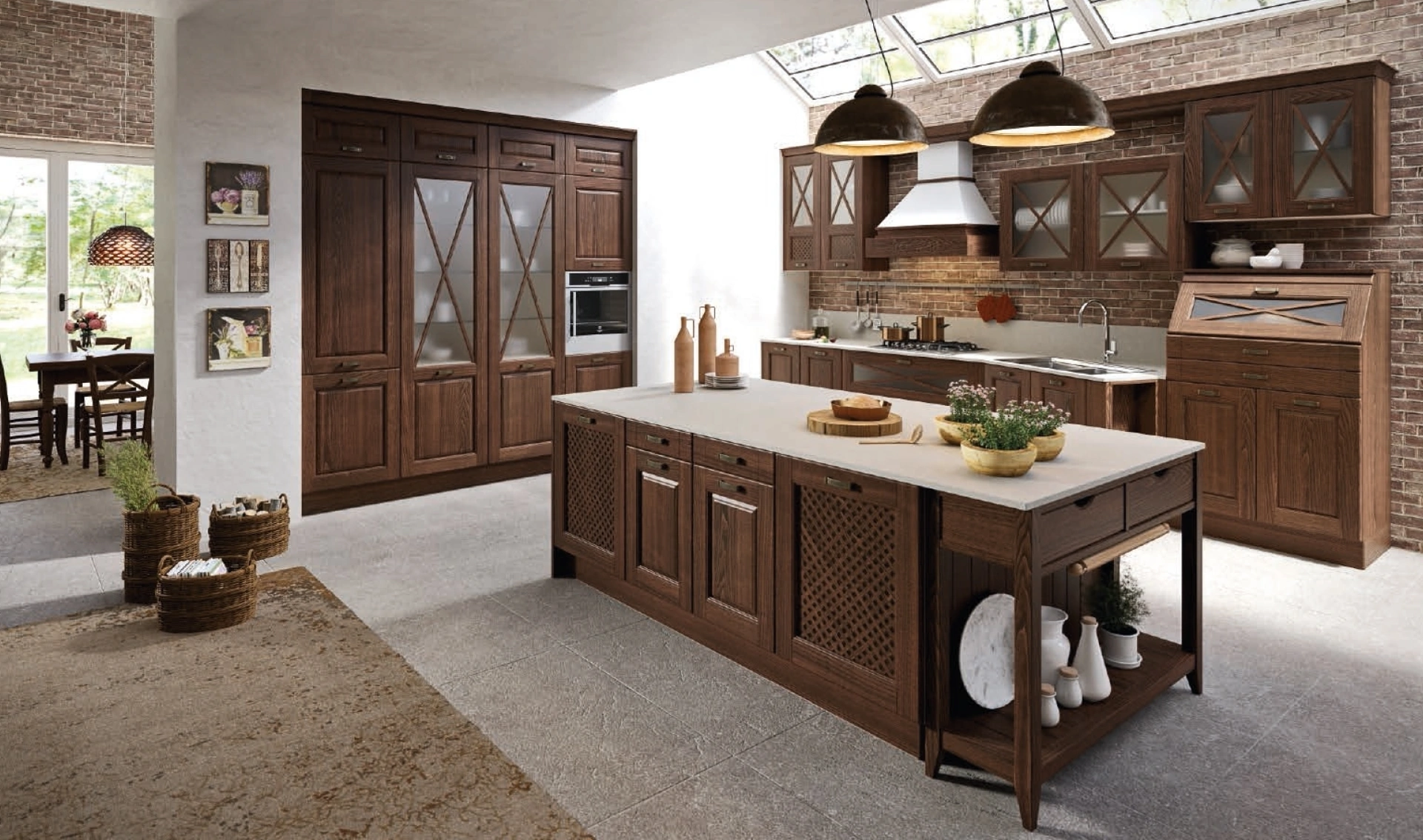 Scopri la Cucina Classica Bellagio con isola di Aran nella fotografia: lasciati affascinare dalle linee sinuose di questo modello in legno. Le più esclusive Cucine Classiche con isola ti attendono per completare l'ambiente secondo la moderna evoluzione dell'arredo con uno stile tradizionale senza tempo. Aran studia attentamente l’evoluzione di un habitus vivendi in costante cambiamento, per progettare soluzioni confortevoli sempre in linea con i nuovi trend d'arredo ma di spiccato stile tradizionale.